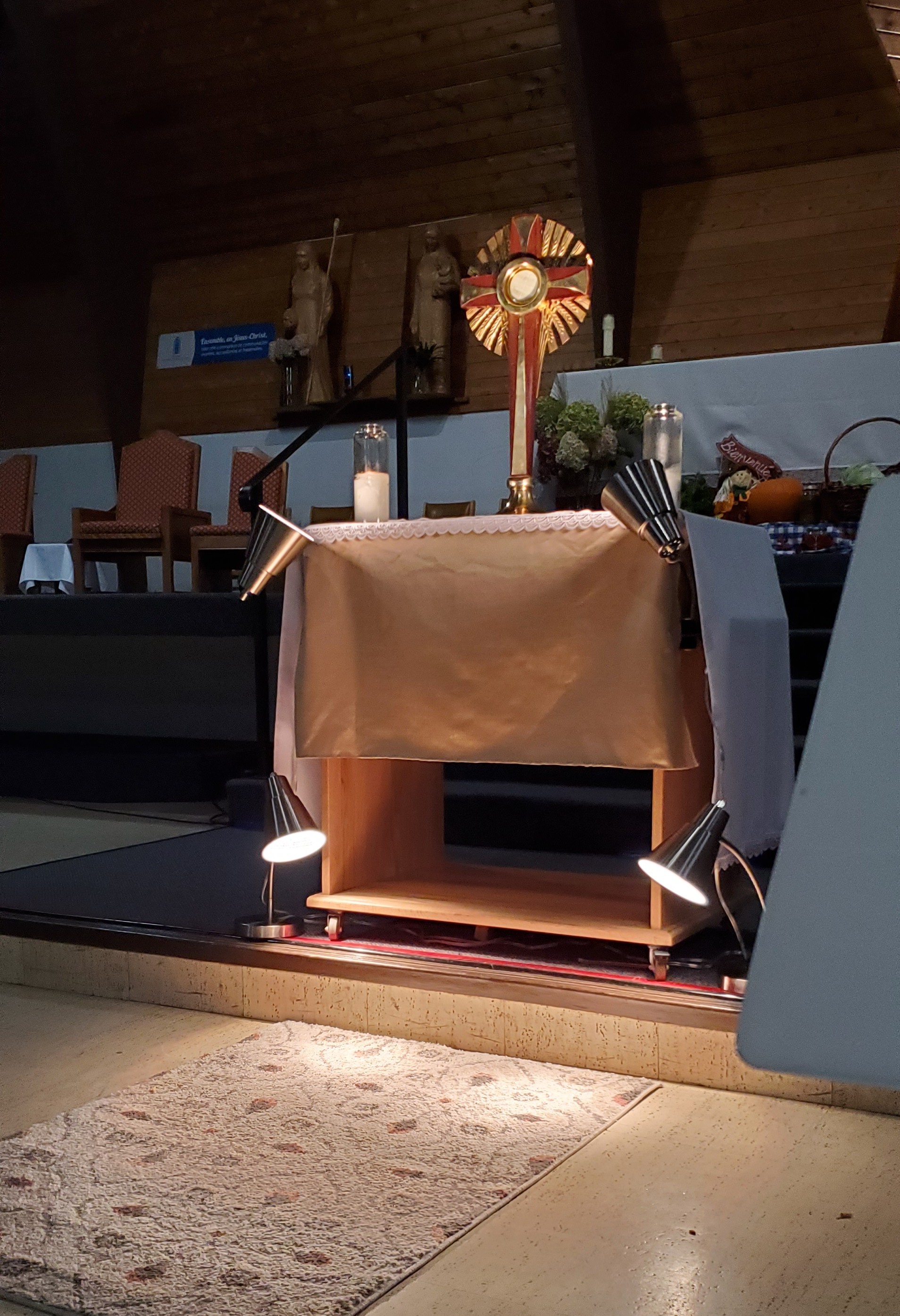 Après-midi d’évangélisation, regroupant de la louange, un temps d’enseignement interactif à partir des questions des participants, de l’adoration eucharistique, concluant avec l’eucharistie.